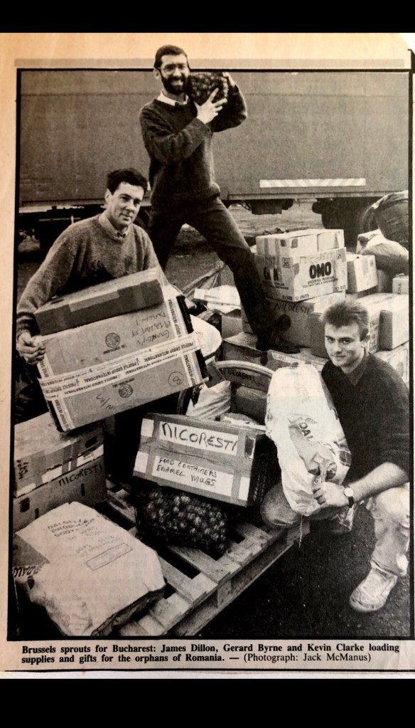 In December 1991, a lorry-load of aid left Dublin, bound for Nicoresti, bearing clothes, food, toys and gas heaters – even brussels sprouts and homemade Christmas puddings. The children at Nicoresti had brussels sprouts and Christmas pudding on Christmas Day in 1991.